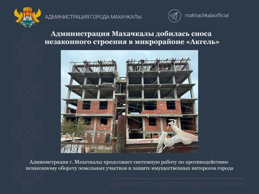 В микрорайоне Акгель, Ленинский районный суд поддержал иск администрации Махачкалы о демонтаже самовольной постройки (кадастровый номер 05:40:000061:4560, участок 37 «А»). Решение принято в связи с незаконным строительством объекта.