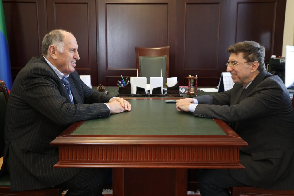 Председатель Правительства Республики Дагестан Абдулмуслим Абдулмуслимов провёл рабочую встречу с художественным руководителем государственного академического заслуженного ансамбля танца «Лезгинка» Джамбулатом Магомедовым.