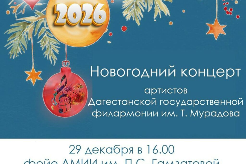 29 декабря в 16:00 Дагестанский музей изобразительных искусств им. П.С. Гамзатовой станет местом проведения новогоднего концерта, подготовленного артистами Дагестанской государственной филармонии им. Т.А. Мурадова. Вход на мероприятие свободный.