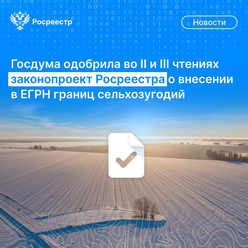 Государственная Дума одобрила во втором и третьем чтениях разработанный Росреестром законопроект, который предусматривает возможность внесения в ЕГРН сведений о границах сельхозугодий в составе земель сельскохозяйственного назначения.
