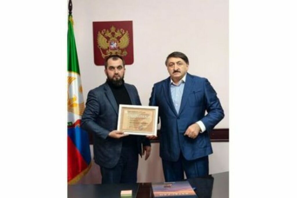 От имени журналистов Дагестана и правления отделения СЖР Магамед Ибрагимов вручил депутату Благодарность за вклад в развитие журналистики Дагестана.