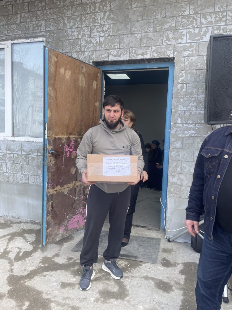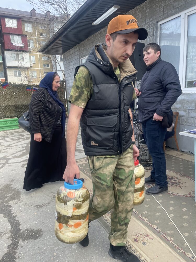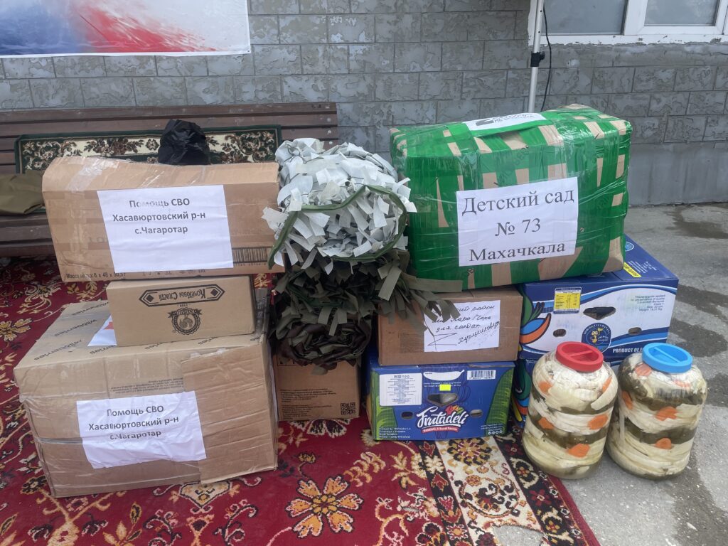 После завершения официальной части, волонтеры дружно провели на СВО Нажмудина,, прибывшего на пару дней.Загрузили его легковой автомобиль маскировочными сетями и сладостями для бойцов.