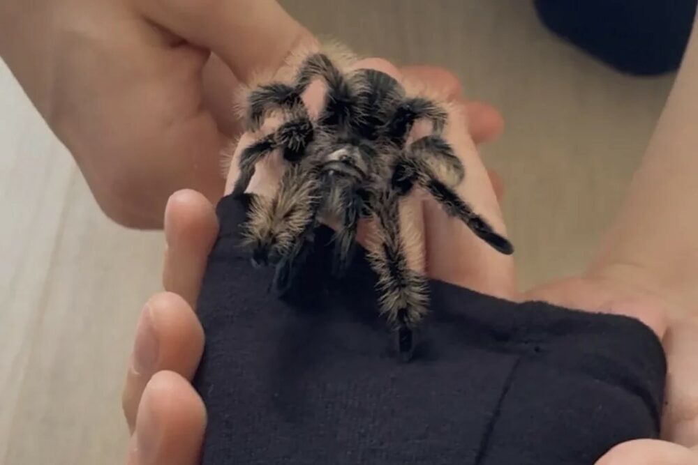 Она положила паука на плечо, но когда он двинулся к шее, паника вернулась: «Он шевелится! Убери!» — закричала Зухра, и питомца быстро вернули в террариум.