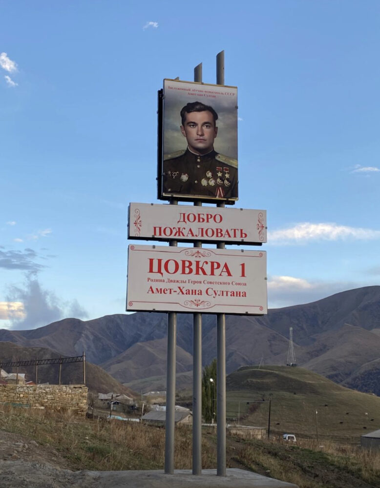Цалчинмур ЦIувкIуллал шяраваллил зума-къирагърай, Совет Союзрал кIийла Виричу АхIмад-Хан Султаннул суратгу дусса, цIагу чирчусса монумент (стела) дуссар.