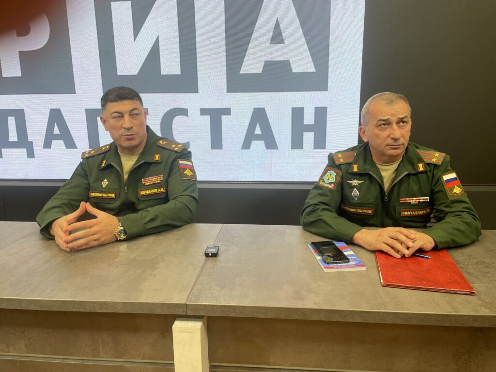 Октябрь зурул 6-нний «Дагестан» РИА-лий хьунни Дагъусттаннал аьралий комиссар полковник АьбдурахIман Мурадхановлул ссуттилсса призыврал хIакъиравусса брифинг. Шикку гьуртту хьунни республикалул Аьралий комиссариатрал призыврал отделданул хъунама подполковник ХIусайн ОьмархIажиевгу.
