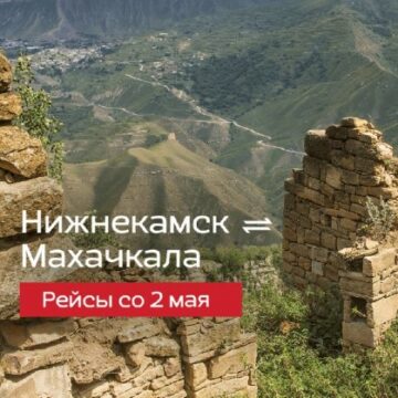 Со 2 мая рады видеть пассажиров на новом регулярном рейсе «Нижнекамск — Махачкала» До двух раз в неделю Эмбраер 190 с компоновкой 110 пассажирских мест Время в пути: 2 часа 35 минут